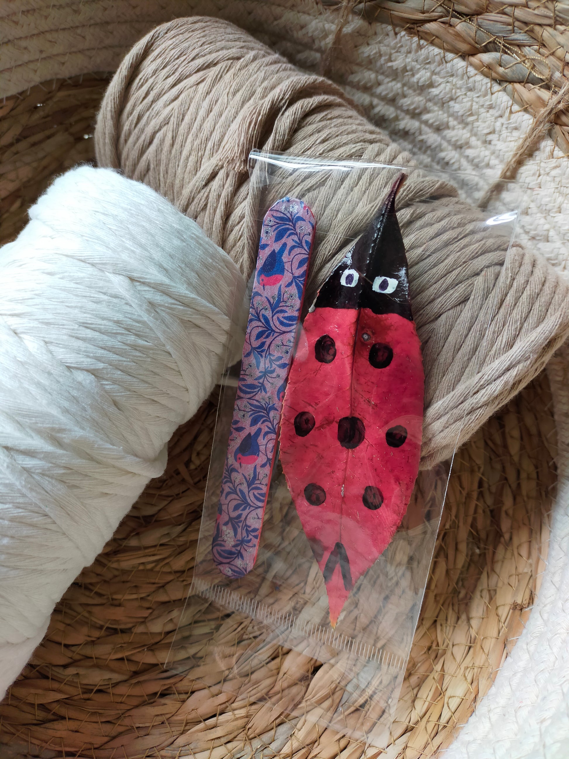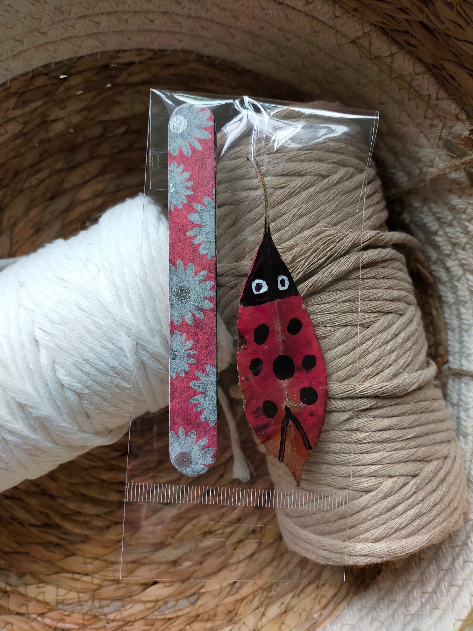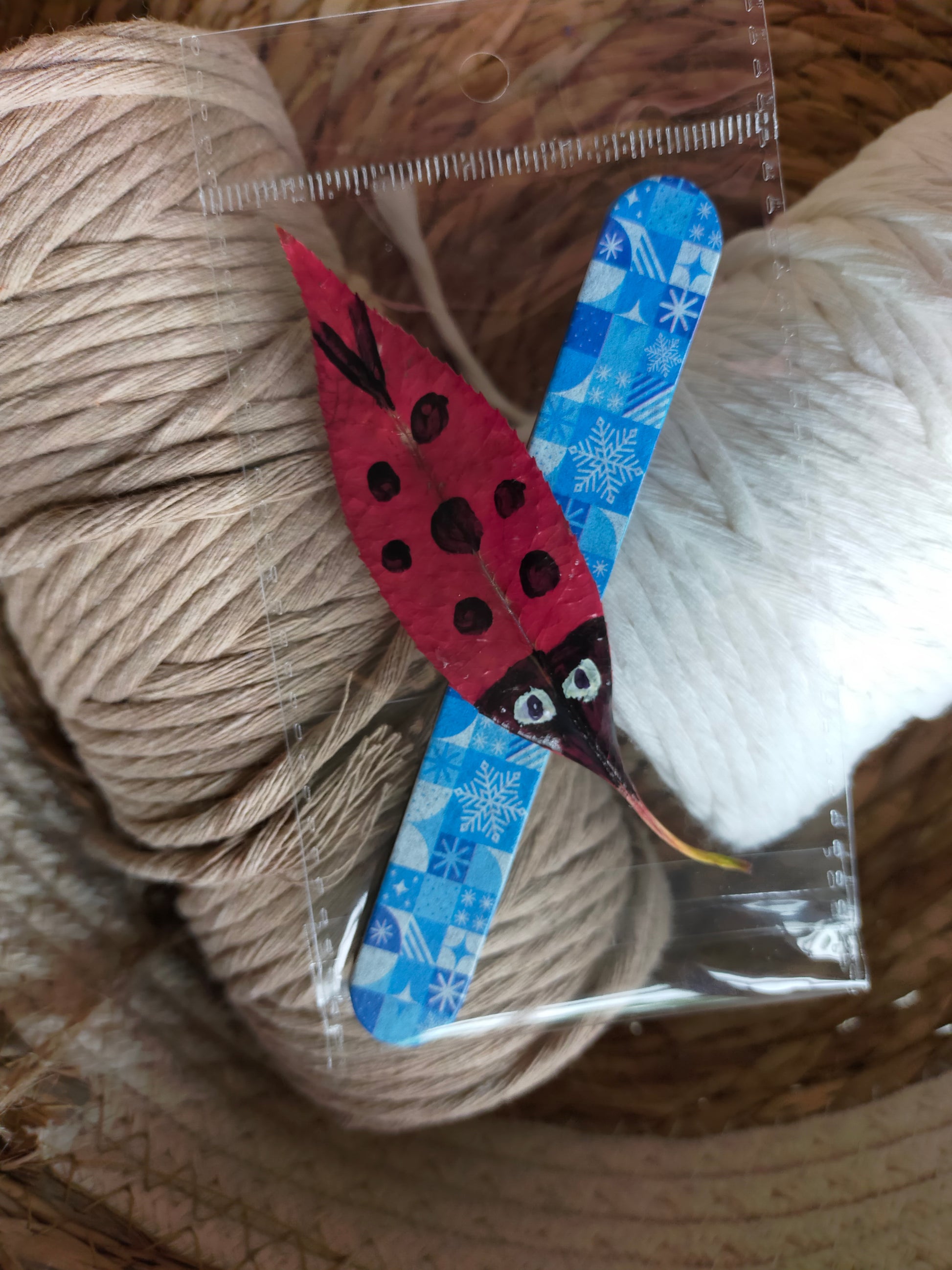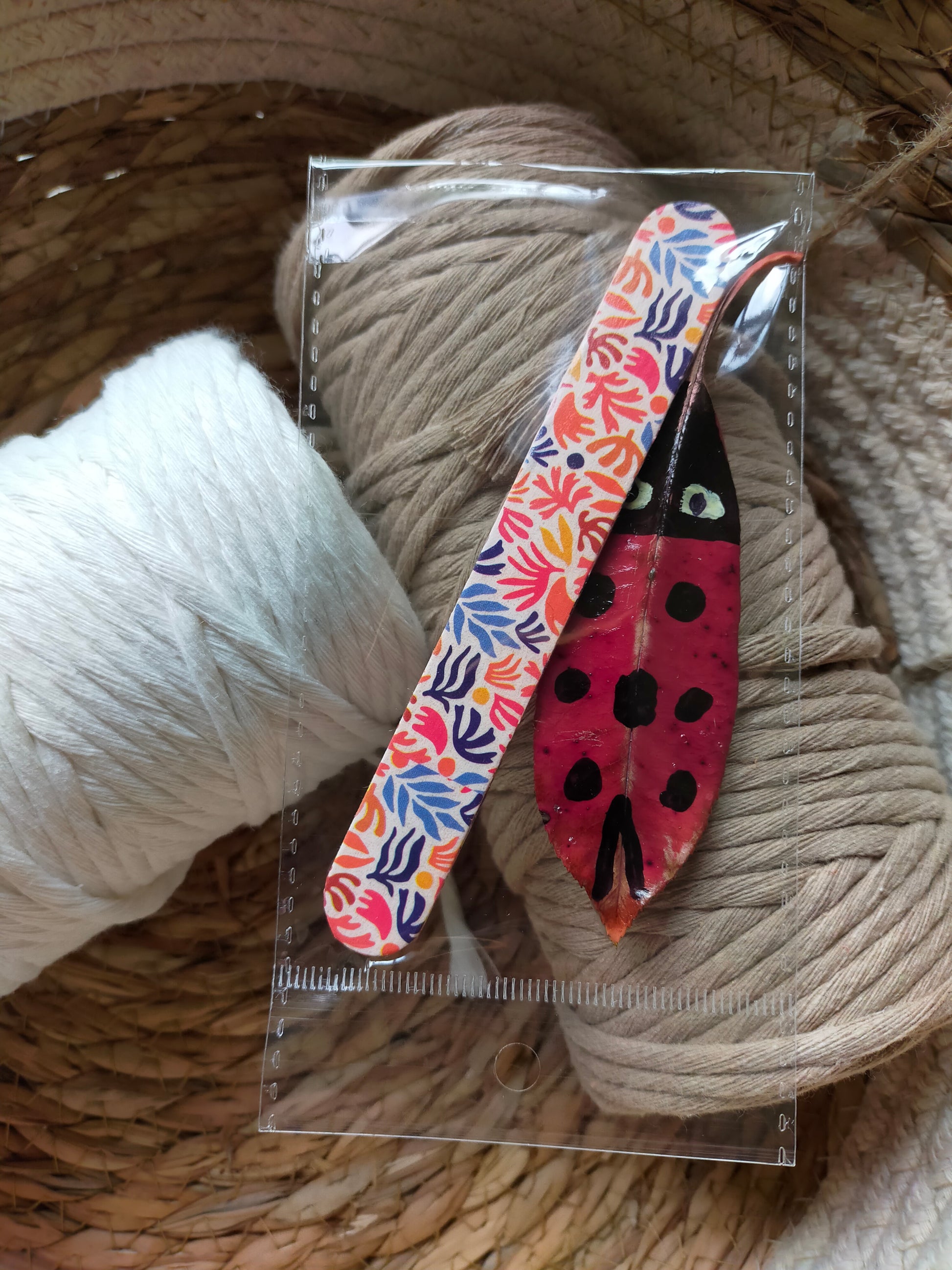 Segnalibri piccoli, realizzati a mano, con coccinella portafortuna a forma di foglia.