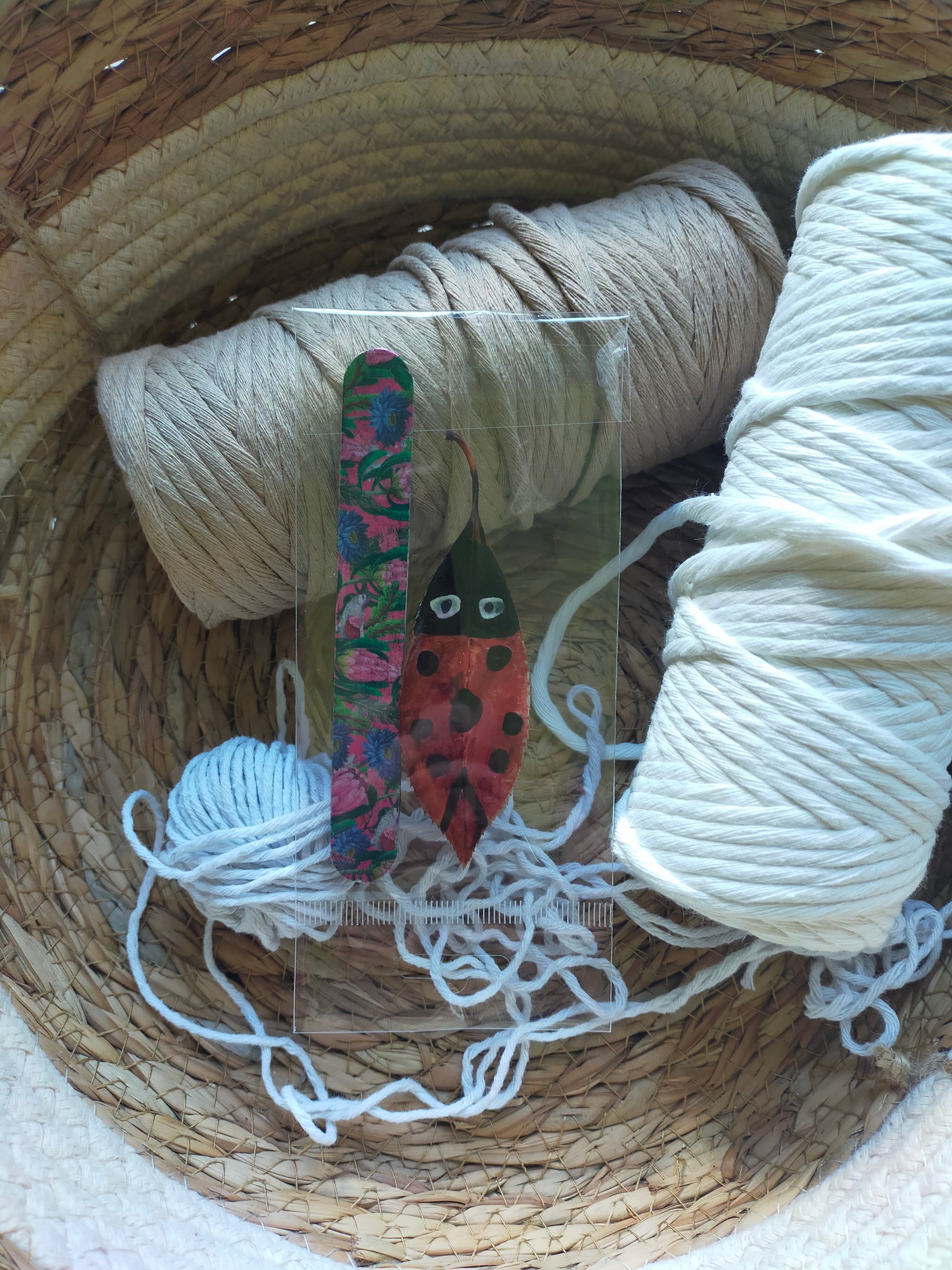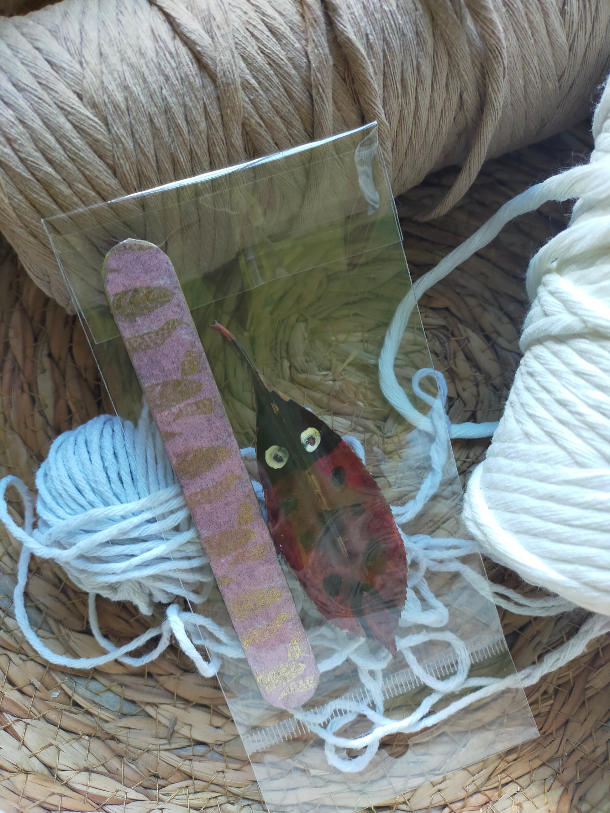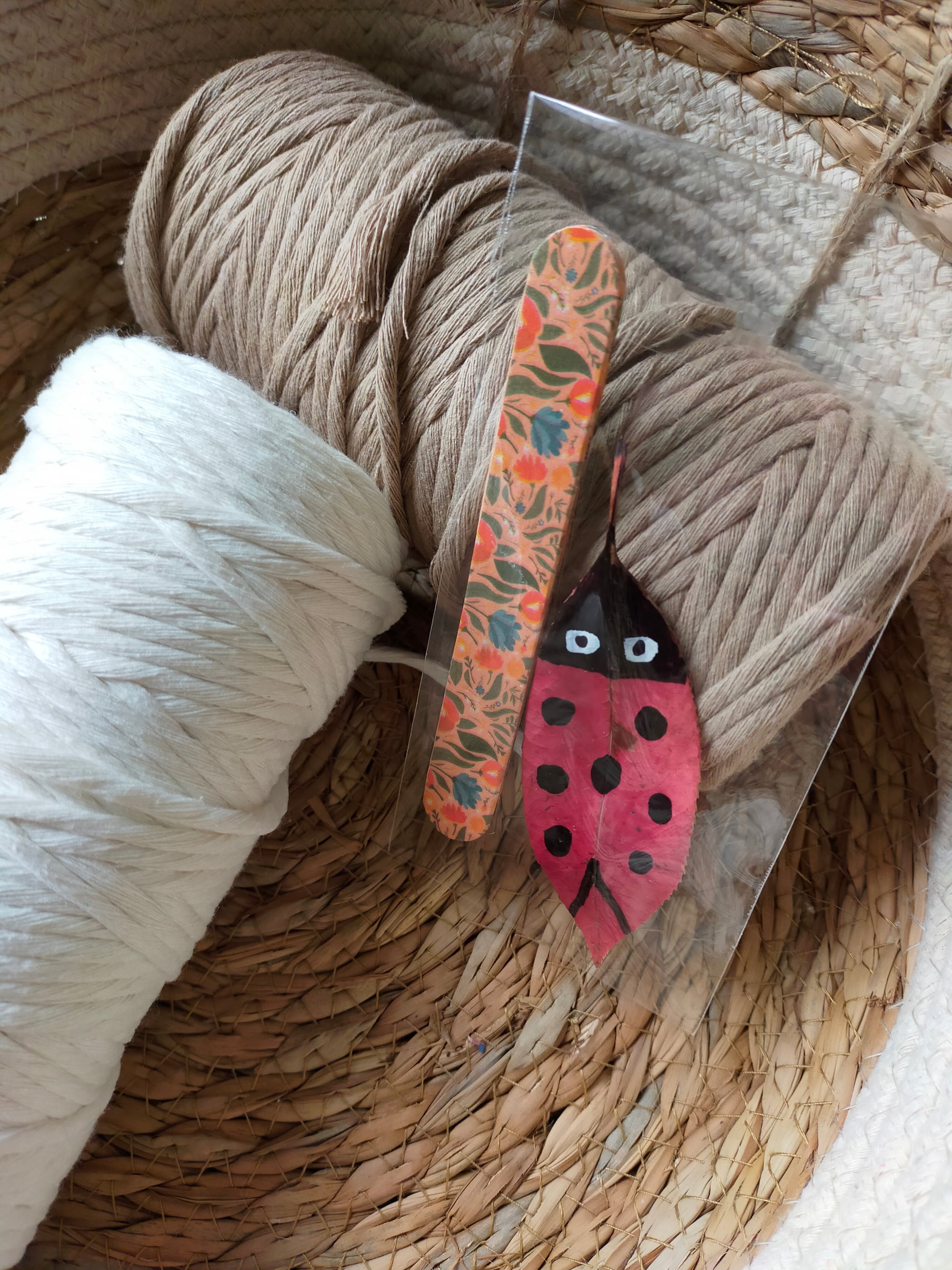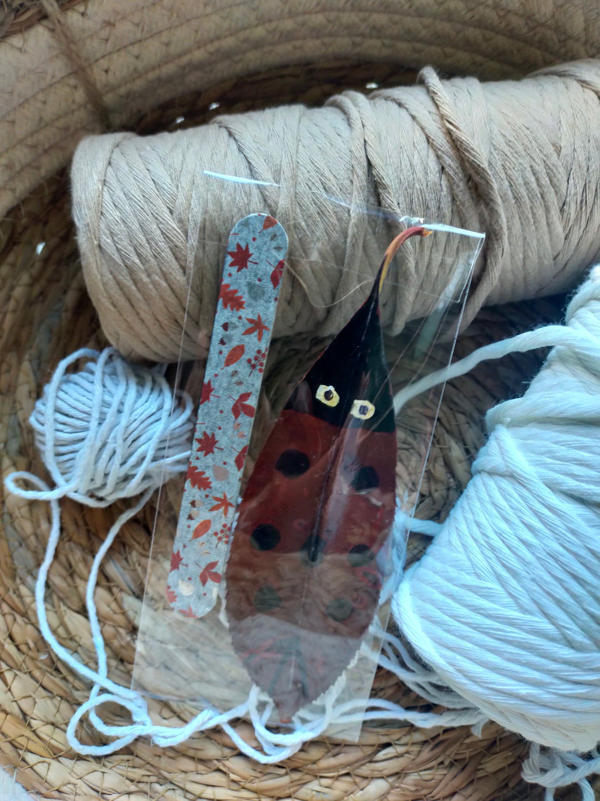 Segnalibri piccoli, realizzati a mano, con coccinella portafortuna a forma di foglia.